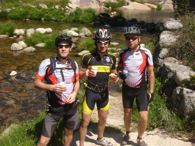 Poucos minutos antes da partida e quando me preparava para tirar a foto de grupo eis que reparo que a minha máquina fotográfica tinha dado o pifo, o que me obrigou a meter o turbo e pedalar até ao carro para ir buscar a minha velhinha Sony e voltar ao local de partida onde já so estava o David à minha espera mas carregámos ainda mais no pedal e logo apanhámos a cauda do pelotão e nos integrámos e mais adiante nos juntámos ao Batata.